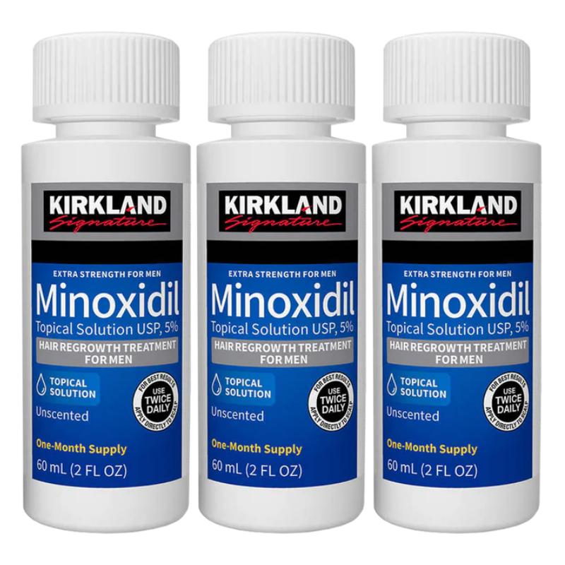 3x Solutie Kirkland 60ml, Minoxidil 5%, impotriva caderii parului, tratament partial 3 luni